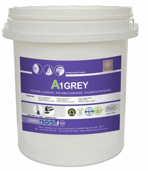 A1 GREY est convenable pour le ponçage des marbres délicats et pour tous ces matériaux particulièrement sensibles aux acides, qui faute de quoi risqueraient de produire un “effet poil d’orange” à la suite d’interventions faits avec des produits agressifs.